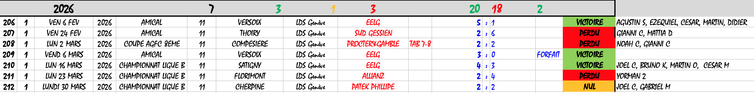 En savoir plusPlus qu’une équipe… une histoire. LDS 3–2 AGFC. Dans le froid de Vernier, on n’a pas seulement joué un match. On a joué avec le cœur, avec nos frères, avec cette envie qui ne s’explique pas. Un but du président. Le doublé de Martin. Les cris, les frissons, les regards complices. Les nouveaux qui arrivent… et qui s’intègrent comme s’ils avaient toujours été là. Ce vestiaire, c’est notre force. Nos sourires, nos bras levés, nos maillots serrés contre nous… C’est ça, les LDS. 2025 se termine… 2026 commence déjà dans nos têtes. Et surtout : on avance ensemble. (Article complet SUR EN SAVOIR PLUS)